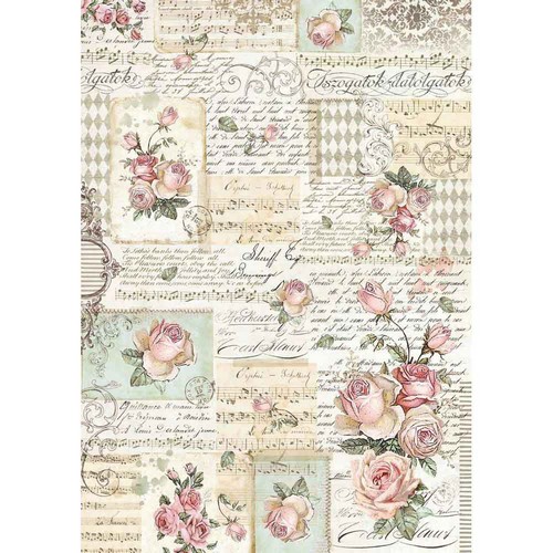 Ριζόχαρτο Stamperia 29,7x42cm A3, Roses & manuscript DFSA3008