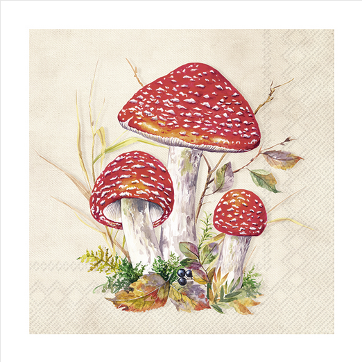 Χαρτοπετσέτα για decoupage, 1 τεμ, Κόκκινα μανιτάρια L1011560