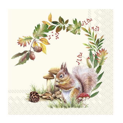 Χαρτοπετσέτα για decoupage, Σκίουρος και στεφάνι, 1 τεμ. L967960