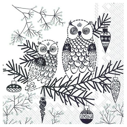 Χαρτοπετσέτα για Decoupage Χριστουγεννιάτικη, Owl ornament white black, 1τεμ. C556897