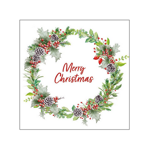 Χαρτοπετσέτα για decoupage, 1τεμ, Χριστουγεννιάτικο στεφάνι με λευκά κουκουνάρια 33316660