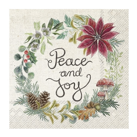 Χαρτοπετσέτα για decoupage, Xριστουγεννιάτικο στεφάνι ‘Peace and Joy’, 1 τεμ. L972766