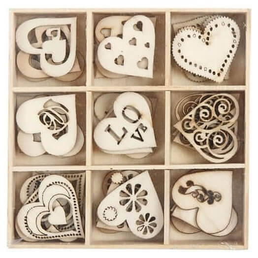 - Ξύλινες καρδιές 28 mm, love, σετ 45 τεμ