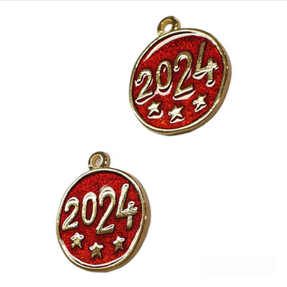 Γούρια στρογγυλά με αστεράκια 2024 σμάλτο 2.5cm 2 τεμ. G1827
